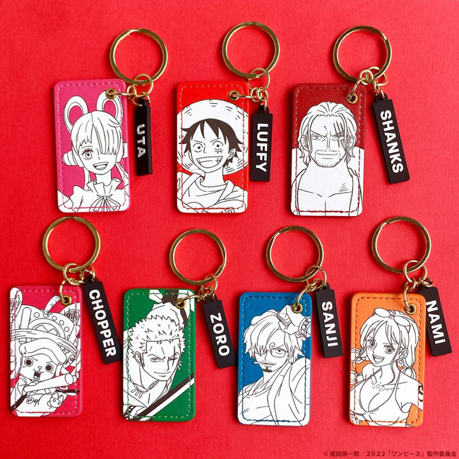 ウタ&シャンクス&麦わらの一味デザインのレザー調キーリング。