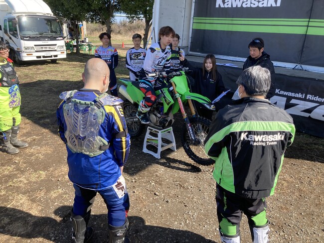 全日本モトクロスIA2クラスに参戦している西條 悠人選手(ピュアテックレーシング所属)、鴨田 翔選手(カワサキプラザ東大阪所属)、佐野 雄太選手(ジュニアライダース所属)、そして全日本モトクロスIB OPENクラスに参戦中の平塚 豪選手(城北ライダースwith634MX所属)から参加者へ個別に姿勢やアクセルワークのアドバイスが行われました。