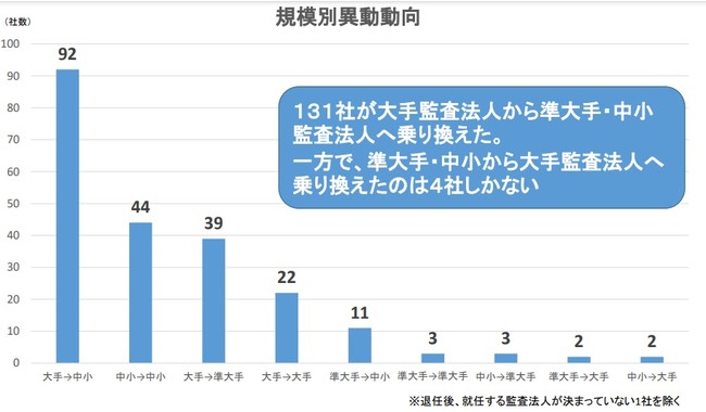 ■EY新日本有限責任監査法人、有限責任あずさ監査法人、有限責任監査法人トーマツ、PwCあらた有限責任監査法人の4法人を「大手監査法人」、仰星監査法人、PwC京都監査法人、三優監査法人、太陽有限責任監査法人、東陽監査法人の5法人を「準大手監査法人」とし、それ以外を「中小監査法人」とした