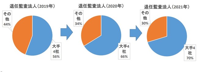 退任した監査法人のうち、7割を大手の四大監査法人が占めた