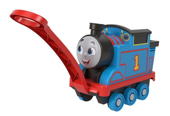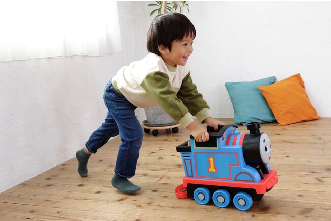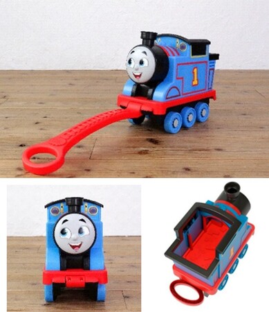 押したり、ひっぱったりして遊ぶことができる、大きなトーマスのおもちゃです。ハンドルをたたむことができ、トーマスの中はおもちゃを入れられるスペースになっていて、おもちゃ収納としても活躍します。親しみやすいキャラクターデザインなので男の子でも、女の子でも遊んでいただける商品です。