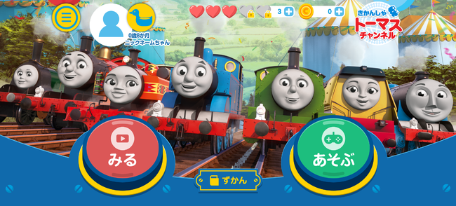 きかんしゃトーマスチャンネル!は、 100話いつでも見放題のおはなし動画や、 お子様の月齢に合わせて0歳8カ月から楽しめる知育ゲームなどを提供する、きかんしゃトーマスの公式アプリです。さらに、100キャラクター以上をラインナップしたトーマス音声付きの図鑑や、トイレトレーニングなどに使用できるスタンプマップなど育児サポート機能も備えています。また、動画視聴・知育ゲームプレイ・アンケート回答などの簡単なミッションをクリアするとトーマスのグッズ等が当たるプレゼントキャンペーンを毎月実施しており、誰でもご参加いただけます。