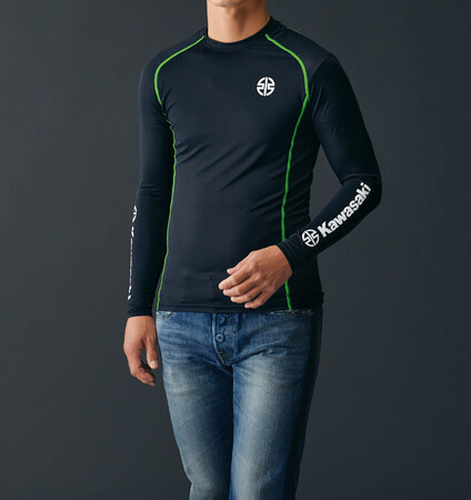 ツーリングやレースシーンでも着用可能なカワサキ×クシタニオリジナルデザインの吸汗速乾ポロシャツ。脇下にメッシュ生地を使用しているので、ジャケットの下に着ていても快適な1着。