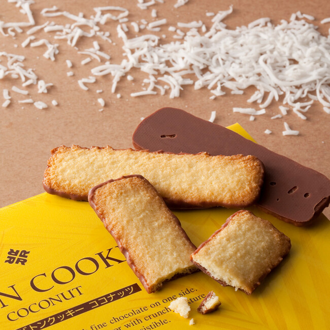 香ばしいココナッツ生地の片面にチョコレートをコーティング