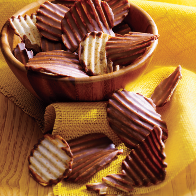 ポテトチップとチョコレート、意外な組み合わせから生まれた大ヒットのおいしさ。 パリッとした軽快な食感のポテトチップの片面に、口どけの良いチョコレートをコーティングしました。 チョコレートの甘さとポテトチップの塩味が織りなすハーモニーをお楽しみください。