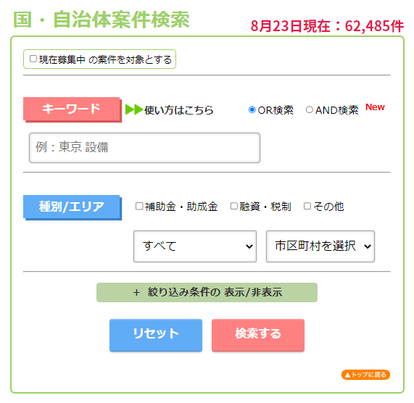 助成金なうは、皆様のお声を反映して随時改良してまいります。