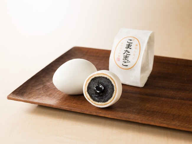 黒ごまのペーストと黒ごま餡をカステラ生地で包んでホワイトチョコで