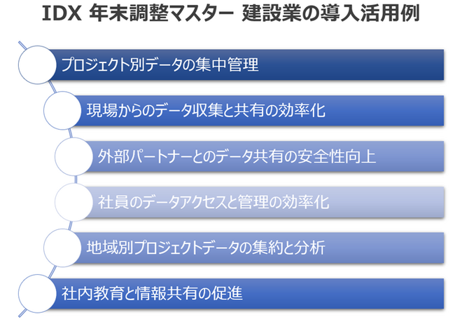 これらの活用例により、建設業界の企業は「IDX 年末調整マスター」を活用してデータの管理と共有を効率化し、業務の正確性と安全性を向上させることができます。