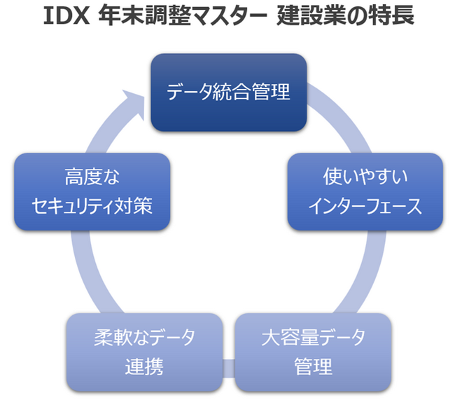 また、税制改正が頻繁に行われ、法的リスクが増している現状において、適切な対応が求められる一方で、これらを効率的かつ正確に処理するソリューションの必要性が高まっています。こうした背景を受け、「IDX 年末調整マスター 建設」は、データの統合管理と業務効率化を実現するために開発されました。