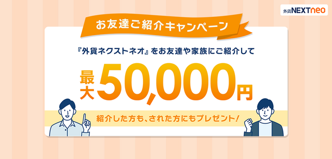 株式会社外為どっとコム(本社:東京都港区、代表取締役社長:竹内 淳)は、店頭FX『外貨ネクストネオ』にて、「お友達ご紹介キャンペーン」を2023年6月1日(木)より実施します。