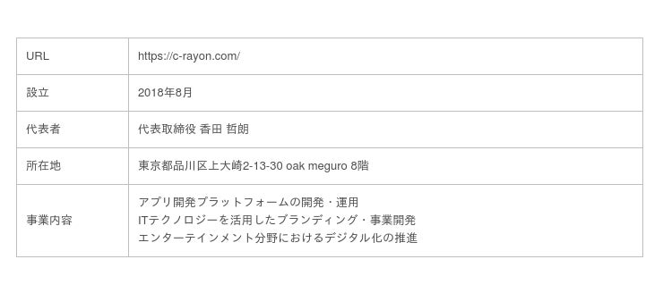 株式会社CRAYONは、モバイルゲームやリアルエンタメの提供を行ってきた株式会社アカツキの100%子会社です。ゲーム開発やリアルエンタメの提供を通じて得たノウハウを元に、デザインとテクノロジーの力でアーティストやタレントがより輝けるための最高のツールを提供してまいります。