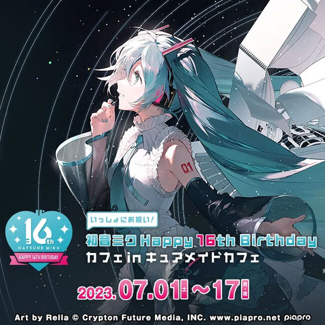 2023年7月1日(土)〜7月17日(月・祝)秋葉原のCURE MAID CAFE?(キュアメイドカフェ)にて、<初音ミク Happy 16th Birthday カフェ in キュアメイドカフェ>の開催が決定しました。