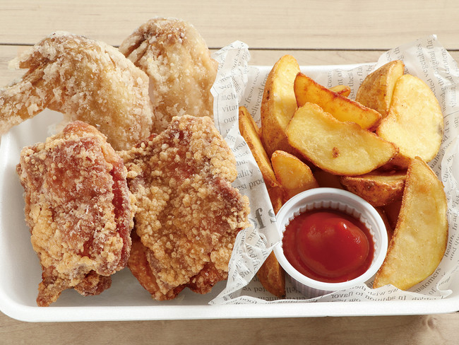 スマイルセット(唐揚げ2個、手羽先2本、ポテトフライ150g) 税込780円