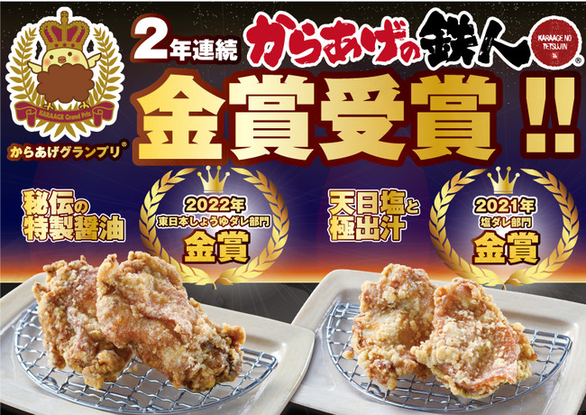 唐揚げ専門店「からあげの鉄人」が「からあげグランプリ(R)」2年連続で金賞受賞!2021年の「塩ダレ部門」に続き、「東日本しょうゆダレ部門」で金賞を受賞しました。