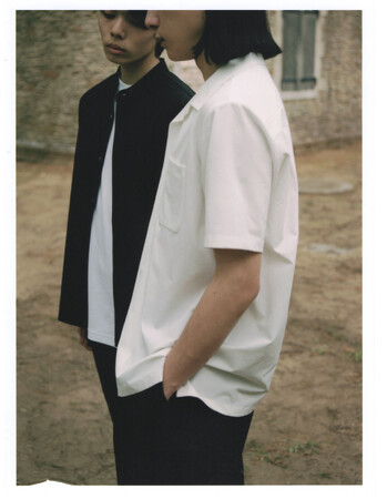全アイテムに共通するイージーケアな仕様、素材の洗濯を前提として、スリムとワイドのふたつのシルエットを基軸に、シャツ2型、パンツ2型、カットソー2型がラインナップ。