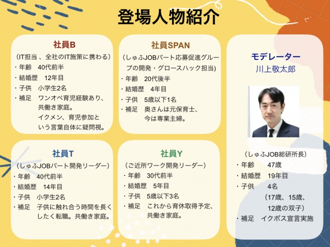 時代に合わせた価値を創造する“ソーシャルカンパニー”、 株式会社ビースタイル(東京都新宿区:代表取締役 三原邦彦)は社内で働くパパエンジニア社員4名を集めて、育児に関する座談会を開催しました。モデレーターは弊社社員で4人の子の父親でもあるしゅふJOB総研所長の川上敬太郎です。「育児」をテーマに2本座談会の様子を配信します。1本目は「男性育児の実態編」、2本目は「『休めない』を脱却!休みやすい雰囲気づくり編」です。