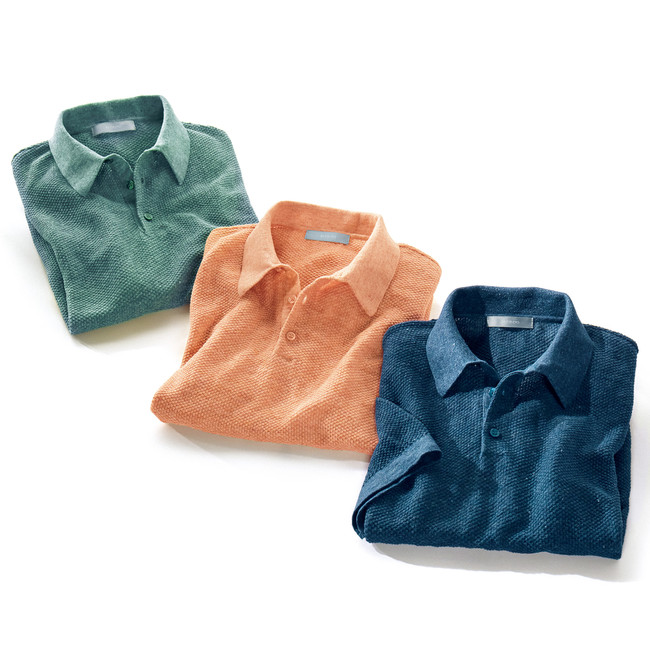 上質なフランダースリネンを使用し、26番双糸で編み上げた鬼鹿の子のポロシャツ。ざっくりとした表情がメランジ調の上品な色合いに味わいを添え、より着こなしやすく仕上がっています。麻ならではのさらりとした風合いで着心地も快適。大人のカジュアルが楽しめます。