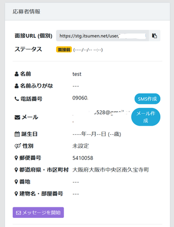 ITSUMENは録画面接機能の他、簡易なATS(採用管理システム)としての機能も備えています。