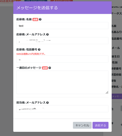 ※応募者詳細画面内にメッセージ開始ボタンを新設