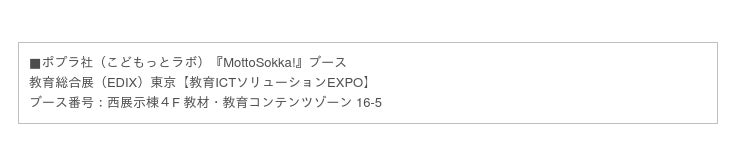 株式会社ポプラ社(こどもっとラボ)『MottoSokka!』ブースのご案内