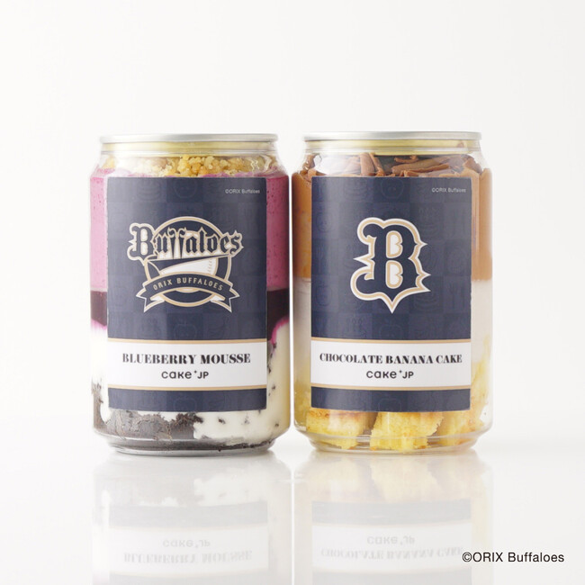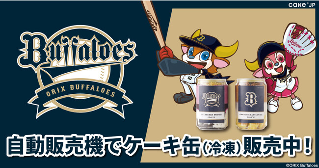 この自動販売機では、球団ロゴやユニフォームカラーを取り入れたCake.jpオリジナルデザインの『オリックス・バファローズ』コラボケーキ缶を販売いたします。Cake.jpのサイトでは2本セットの販売ですが、コラボ自動販売機では各1本ずつよりお買い求めいただけます。