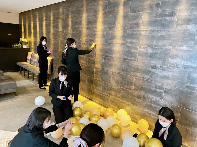 ホワイエを風船などで装飾し、お客様にお写真を楽しんでいただくブースを設置しました。