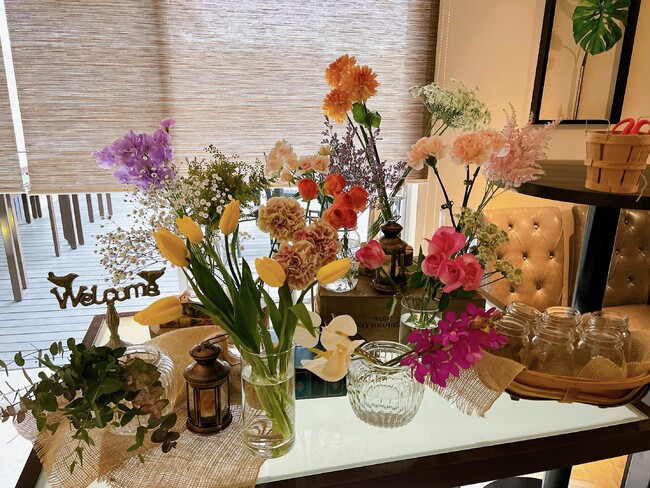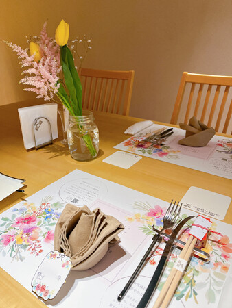 新郎新婦様にお好きなお花をビュッフェ形式でお選びいただき、お選びいただいた花を試食会の際にテーブル装花として使用しました。