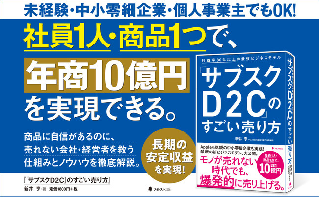 利益率80%以上の最強ビジネスモデル サブスクD2C総研(株)代表新井著『サブスクD2Cのすごい売り方』が4刷の重版が決定!