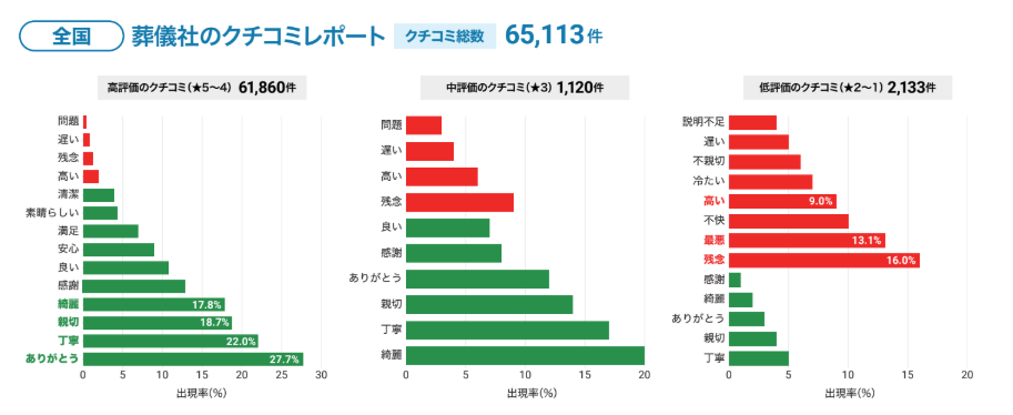 この度カンリーでは、全国の葬儀場・斎場に寄せられた65,113件のクチコミを徹底分析。 どのような要素が「選ばれる決め手」となり、逆にどのような対応が深刻な低評価を招くのかという実態をまとめたレポートを公開しました。
