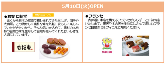 神奈川県初7店舗、海老名市初12店舗を含む約40店舗が順次オープン中のリニューアルも、まもなく佳境に。本リニューアルの目玉である1F食物販ゾーン「EBINA FOOD SELECTION」の全面リニューアルを、いよいよ5月に迎えます。