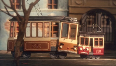 路面電車の親子は毎朝、お客さんを乗せるため街に出る。