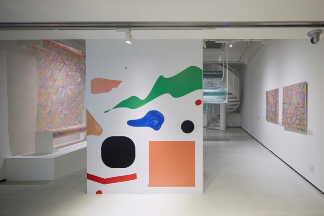 3. 歩き、ただよいながら作品をみる会場には、カーブや直線、多角形のようなさまざまな形からなる壁を立て、いろいろな方法で作品を展示しています。壁の曲線に沿って歩いてみたり、宙に浮いたような作品をのぞき込んだり、頭上に浮かんだ作品を見上げたりと、会場を歩きただよいながら、来場者それぞれのさまざまな見方で作品をご覧いただけます。