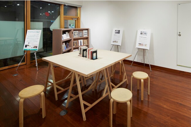 「ただよう記憶の世界」の出展作家に関係する施設を紹介するパネル展示に加え、アール・ブリュットの関連書籍の閲覧スペースとして開放いたします。ぜひご高覧ください。