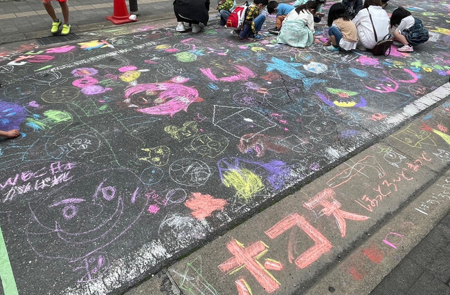 歩行者天国エリアでは、自由に道路にお絵描きが出来る「チョークアート」のエリアや、人工芝を敷き、みんなで落ち着ける「くつろぎスペース」を設けます。通り沿いの商店に立ち寄るなど、自動車の通行を気にすることなく、会場内でゆっくりと過ごせます。