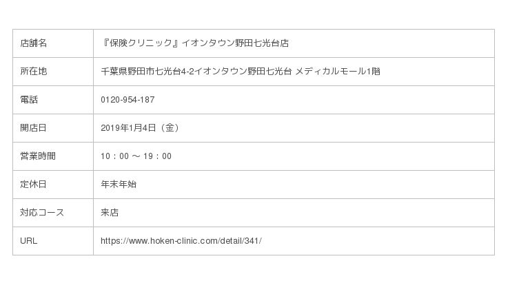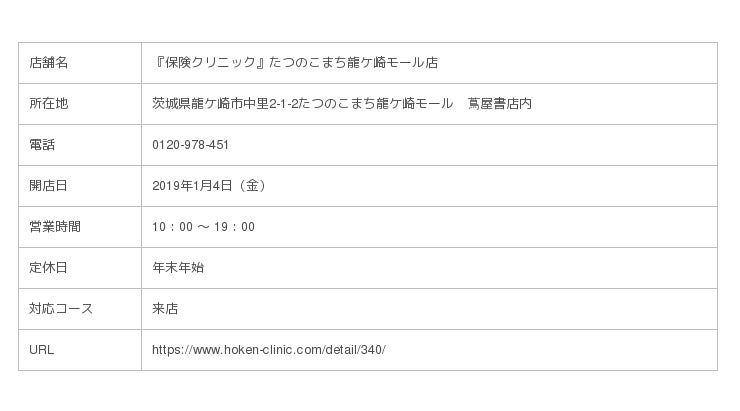2019年 年明けに『保険クリニック』3店舗オープン!
