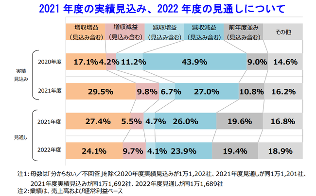 そこで、帝国データバンクは、2022年度の業績見通しに関する企業の意識について調査を実施した。本調査は、TDB景気動向調査2022年3月調査とともに行った。