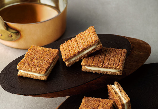 シュガーバターの木に新しく「シュガーバターサンドの木 焦がしキャラメル」が定番サンドとして仲間入り。国産ミルクを煮詰めたキャラメルパウダーで仕上げたシリアル生地に、特製ブレンドシュガーをふって丹念にキャラメリゼ。ブリュレ仕立ての香ばしい生地と、生乳のようなすっきりとしたホワイトチョコレートの組み合わせがくせになるサンドです。