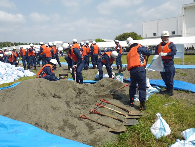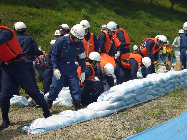 河川からの越水による浸水被害を防ぐため、土のうを使用した工法等を行います。