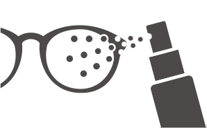使用前にボトルを軽く振ってから、レンズ両面にそれぞれ1~2回ずつスプレーし、柔らかい布やティッシュペーパーなどで液を軽く伸ばしてください。(※保湿剤配合のティッシュペーパーは使用しないでください。)超撥水コートのレンズなどは馴染みにくいのでしっかり馴染ませてください。