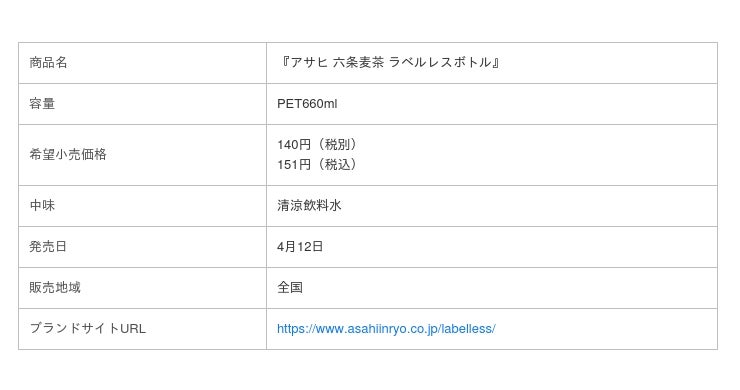 お客様の声にお応えし、ロングセラーブランドが復活『アサヒ 六条麦茶 ラベルレスボトル』全国発売