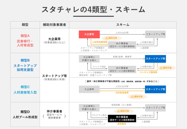 スタチャレは、費用負担者および実施の目的により下記の類型に分かれます。