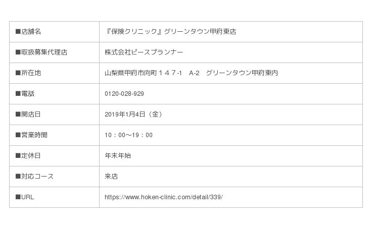 『保険クリニック』グリーンタウン甲府東店1月4日(金)オープン!