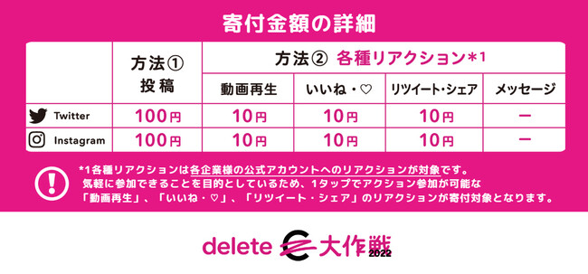 ●SNS投稿が寄付になる「#deleteC大作戦」の内容