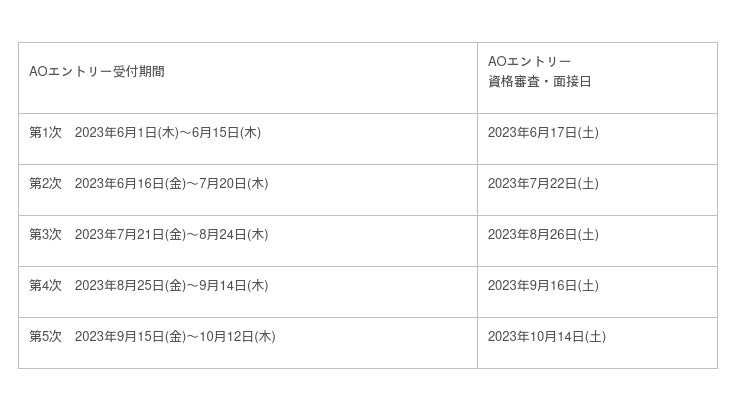 AOエントリー受付期間と資格審査・面接日