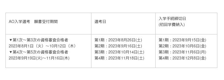 第1次AO入学エントリー受付期間は2023年6月1日(木)〜6月15日(木)です。