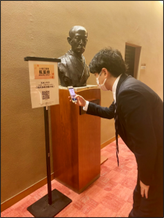(1)大劇場ロビー内の各ポイントに設置してあるQRコードを、スマートフォンの画面で読み込みます。