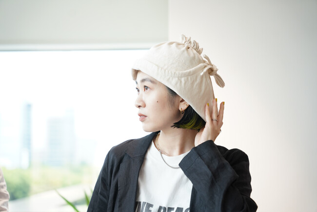 アート寄りだったコンテスト作品を、生活に寄り添う帽子にするという中で、元のアイデンティティをしっかりと残しながら、実用性をもたせるというところで試行錯誤しました。オーバーライドのデザイナーさんにも、材料から工程までたくさんのご提案をいただき、おかげさまでようやく商品化に辿りつきました。