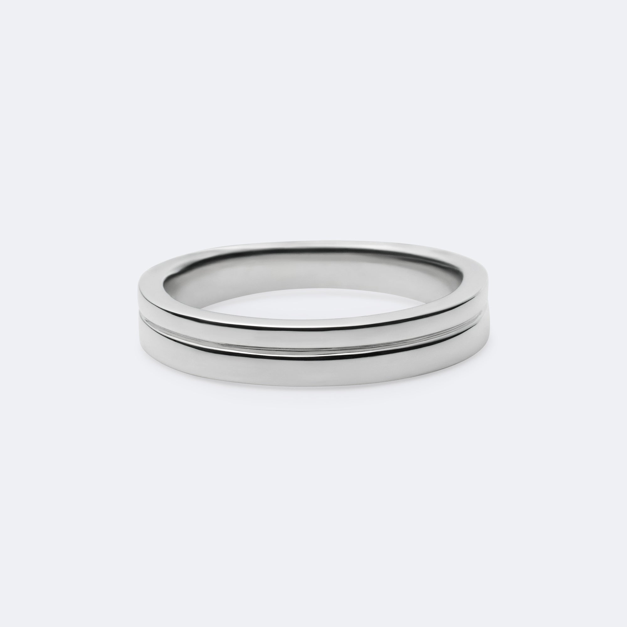 プラチナならではの心地よい重みと存在感が感じられ、シンプルな中にも洗練されたモダンさと高級感が漂うデザイン。