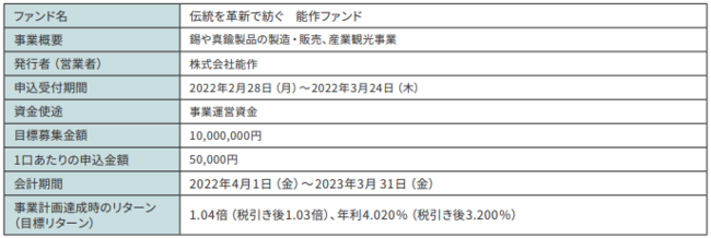 ソニー銀行株式会社(代表取締役社長:南 啓二/本社:東京都千代田区/以下 ソニー銀行)は、投資型クラウドファンディングのプラットフォーム「Sony Bank GATE」において、2022年2月28日(月)より、株式会社能作を営業者として、出資の募集の取り扱いを開始しますのでお知らせいたします。