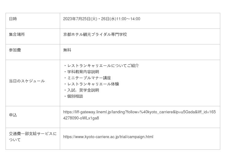 【京都ホテル観光ブライダル専門学校】専門学校の授業が体験できる!7/25(火)・26(水) 学生レストランでお食事ができるスペシャルオープンキャンパス実施!